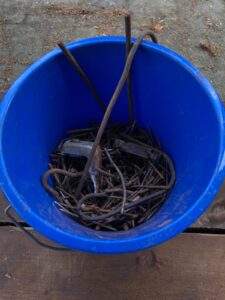 Paula is de hele dag bezig geweest met de spijkers! Een emmer vol!