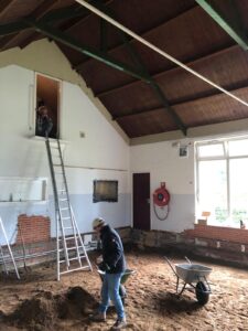 De werkzaamheden hebben zich gericht op het voorbereiden van het storten van het schuimbeton in de grote zaal. Op maandag 10 juni komt aannemer Wubs om de vloer te storten met 51 cm schuimbeton dat dient als isolatie.