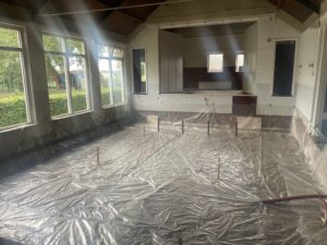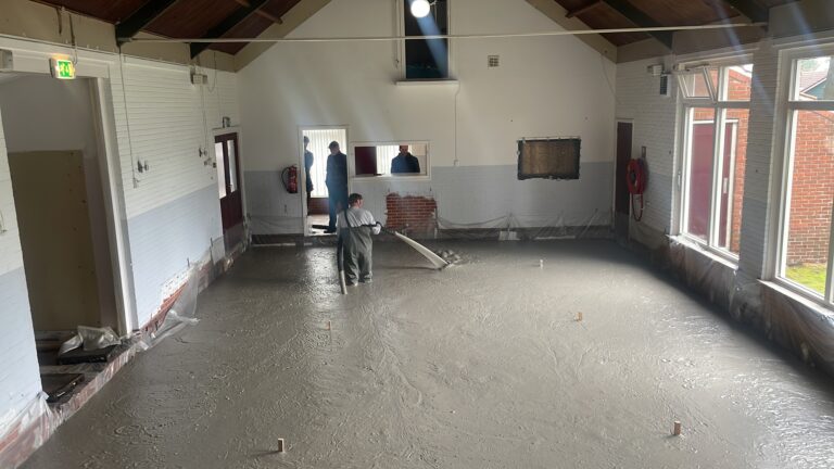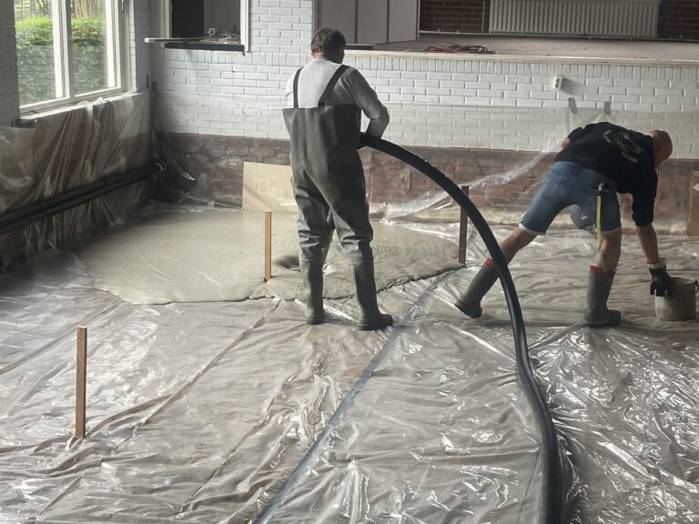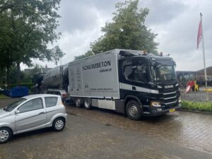 En wie vanmiddag in de buurt van het Buurthuis was zal het niet ontgaan zijn: het schuimbeton voor de nieuwe vloer is gestort. Zie hieronder voor een impressie en het resultaat hiervan.